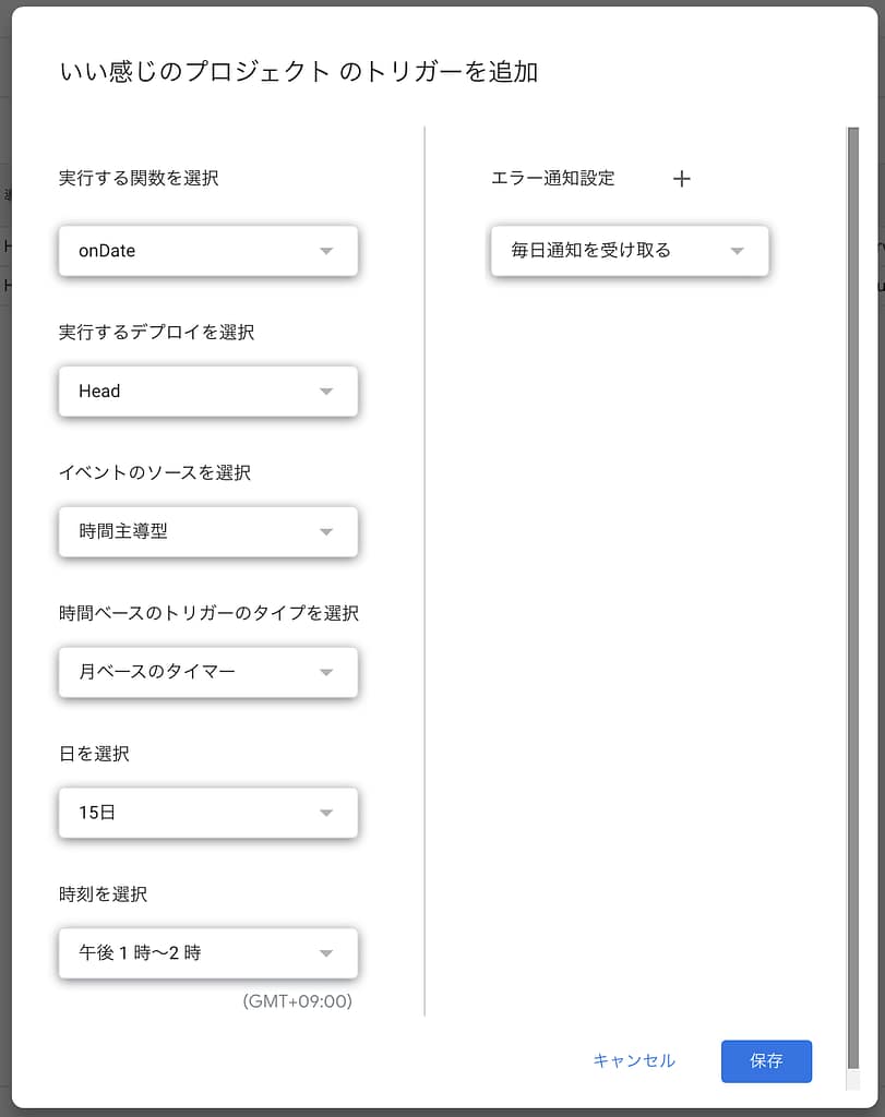 今回作ったGASの名前になってればok - 実行するデプロイを選択: